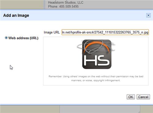 The image you use needs to have a URL associated with it. This just means that the image can be found online, and it can be anywhere. If you have a Flickr account, Facebook profile, or any other photo sharing site, all you need to do is upload the image you want to use to that site. Then, you will right-click on the image and select 'Copy Image URL' or 'Copy Image Location' depending on your browser.